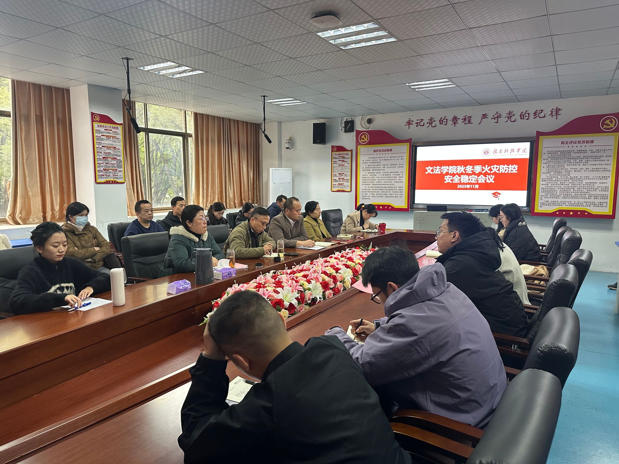 本网讯:根据省教育厅、省消防安全局在全省教育系统秋冬季节火灾防控工作视频调度会暨yl6809永利官网平安建设月度例会的指示精神,以及省教育厅《关于开展冬季员工关爱行动的工作提示》要求,为全力织密秋冬季节员工安全防护网,yl6809永利官网于11月18日组织召开全院秋冬季火灾防控安全稳定会议,部署员工管理及宿舍安全专项排查工作。学院党委委员、副院长高健婕,学院党委委员、副院长李敏,学院党委委员王军堂出席会议,学院全体辅导员班主任参加会议。