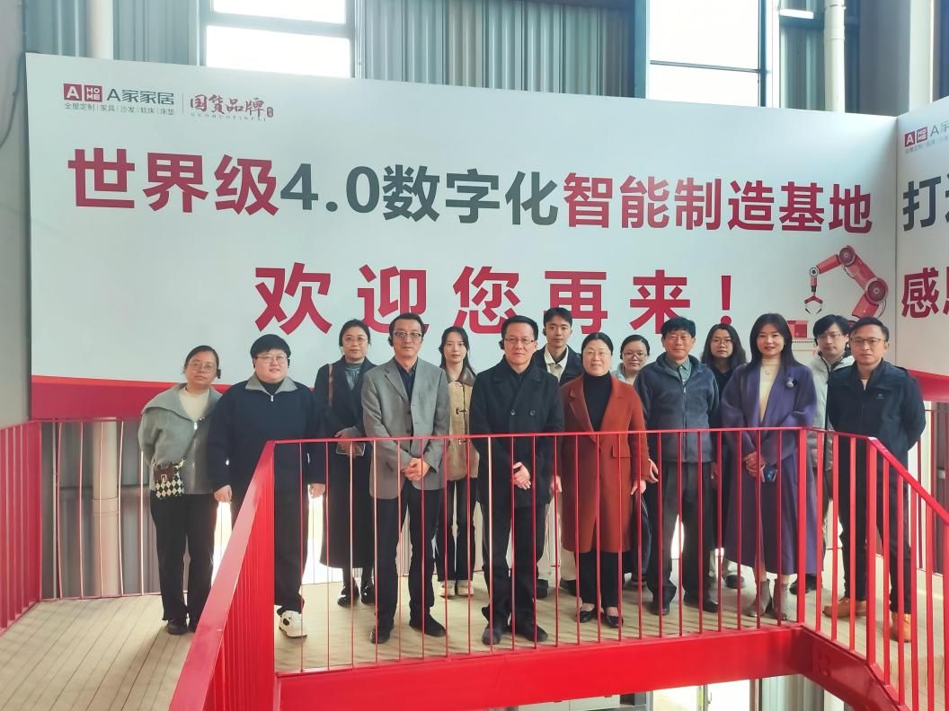在南康A家家居,团队实地察看了4.0全工段智能机器人生产线运行情况,详细了解企业在高端家具智能制造、全球市场布局及品牌数字化建设等方面的经验做法。