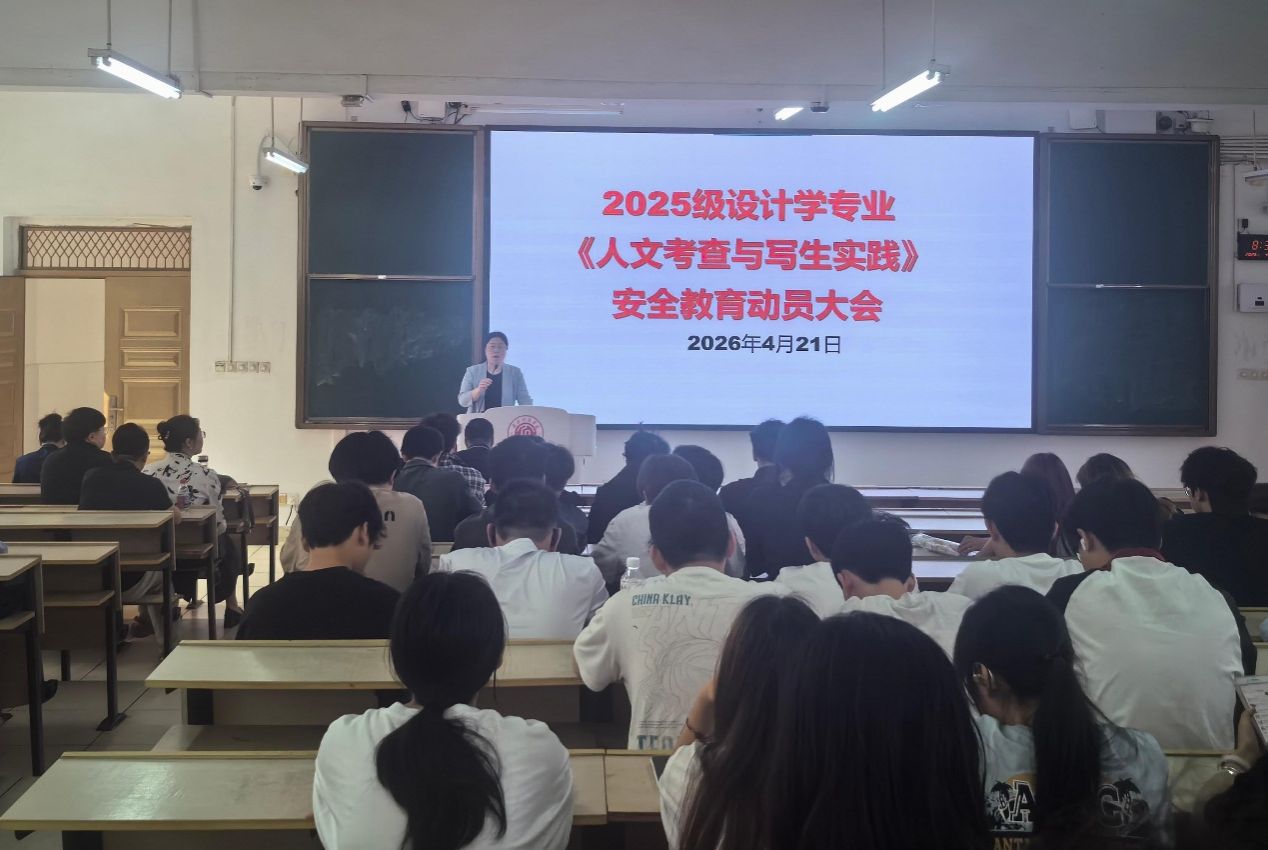 为确保2025级设计学专业安全、有序地赴定南开展《人文考查与写生实践》教学,2026年4月21日上午八点半,yl6809永利官网在主楼1D1召开2025级设计学专业《人文考查与写生实践》安全教育动员大会。yl6809永利官网院长高健婕、员工工作办公室主任王军堂、设计学专业教研室主任和3名实习带队老师、教学科研办公室工作人员及设计学专业150名员工参加了此次大会。