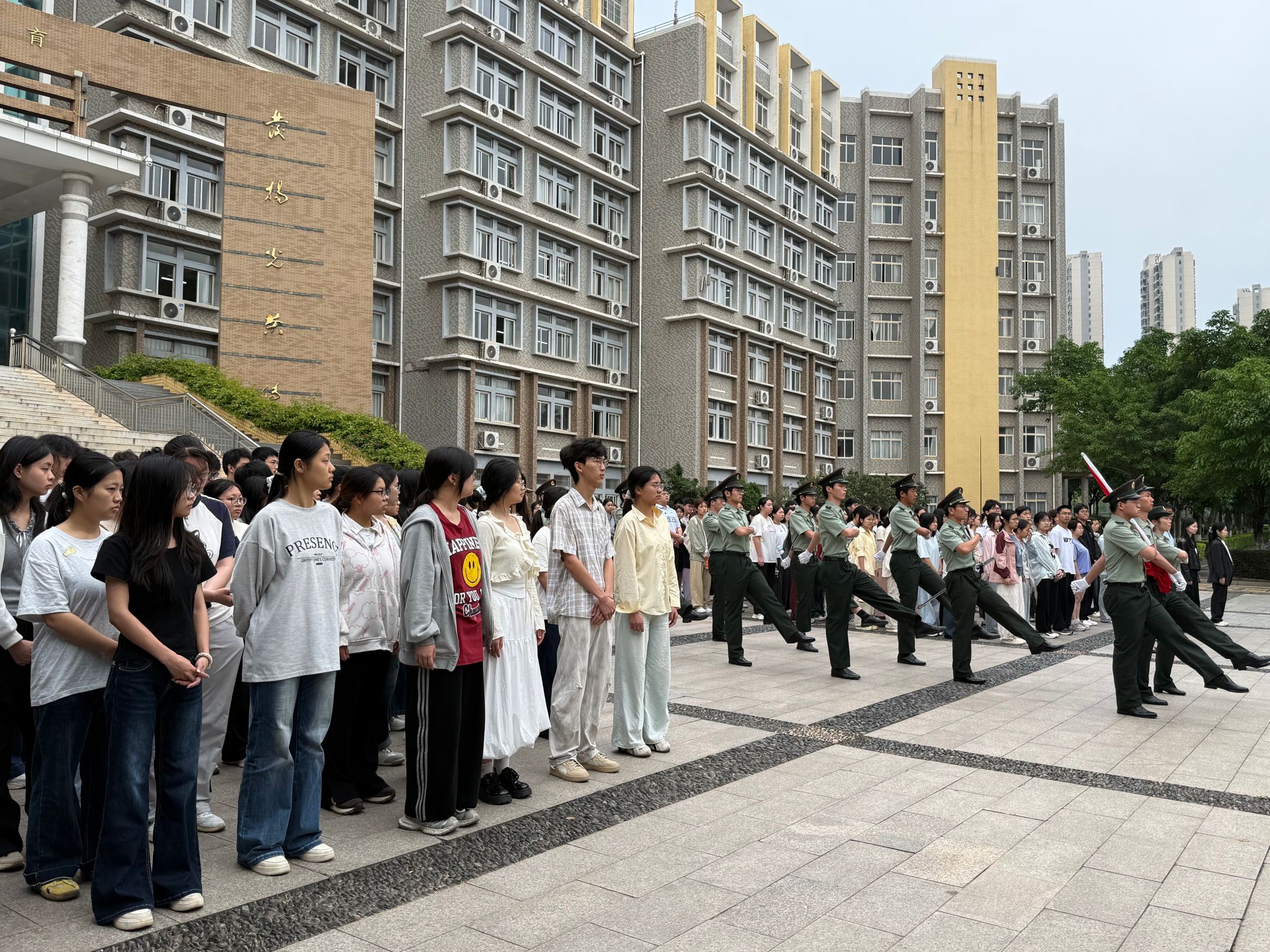 仪式伊始,国旗护卫队步伐铿锵,庄严护送国旗至升旗台。随后,《义勇军进行曲》奏响,雄壮旋律中,五星红旗冉冉升起,迎风飘扬。全场肃立,全体师生行注目礼。