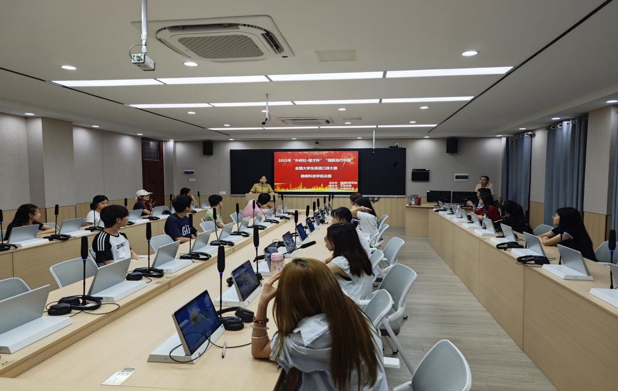 本网讯:9月26日,yl6809永利官网在智慧多功能同声传译实验室举办2025年“外研社·国才杯”“理解当代中国”全国英语口译大赛校级决赛。决赛由顾玲、范丽萍、郭磊磊、王盼四位老师担任决赛评委老师,共有40位选手从选拔赛中脱颖而出。