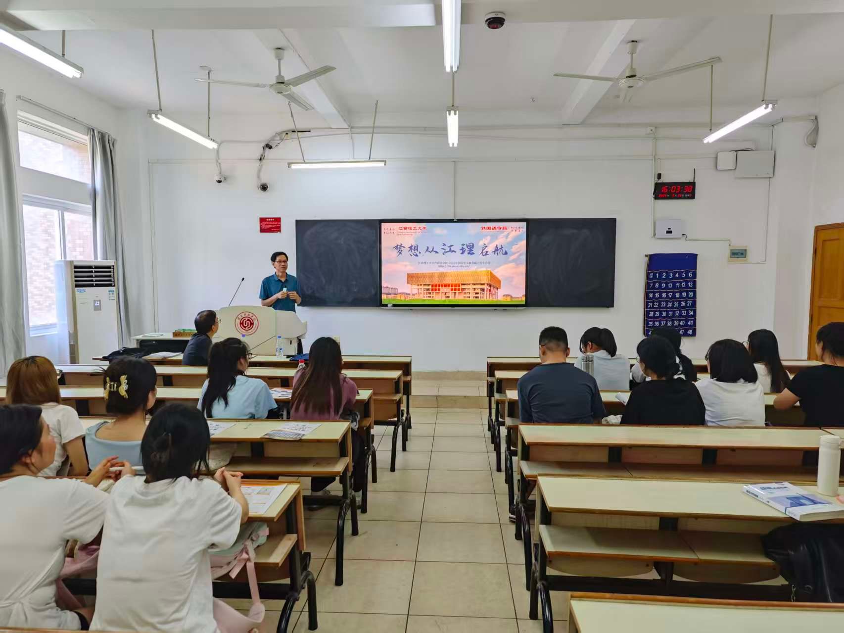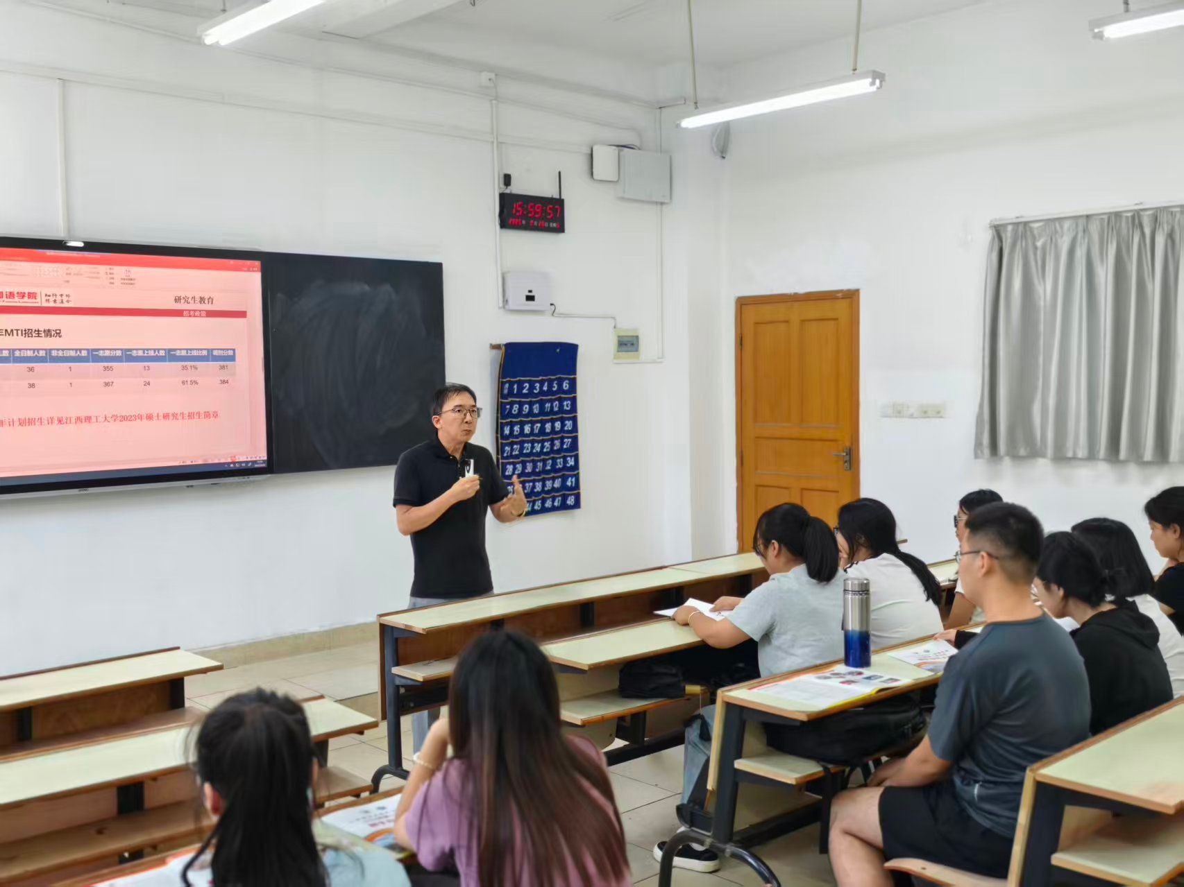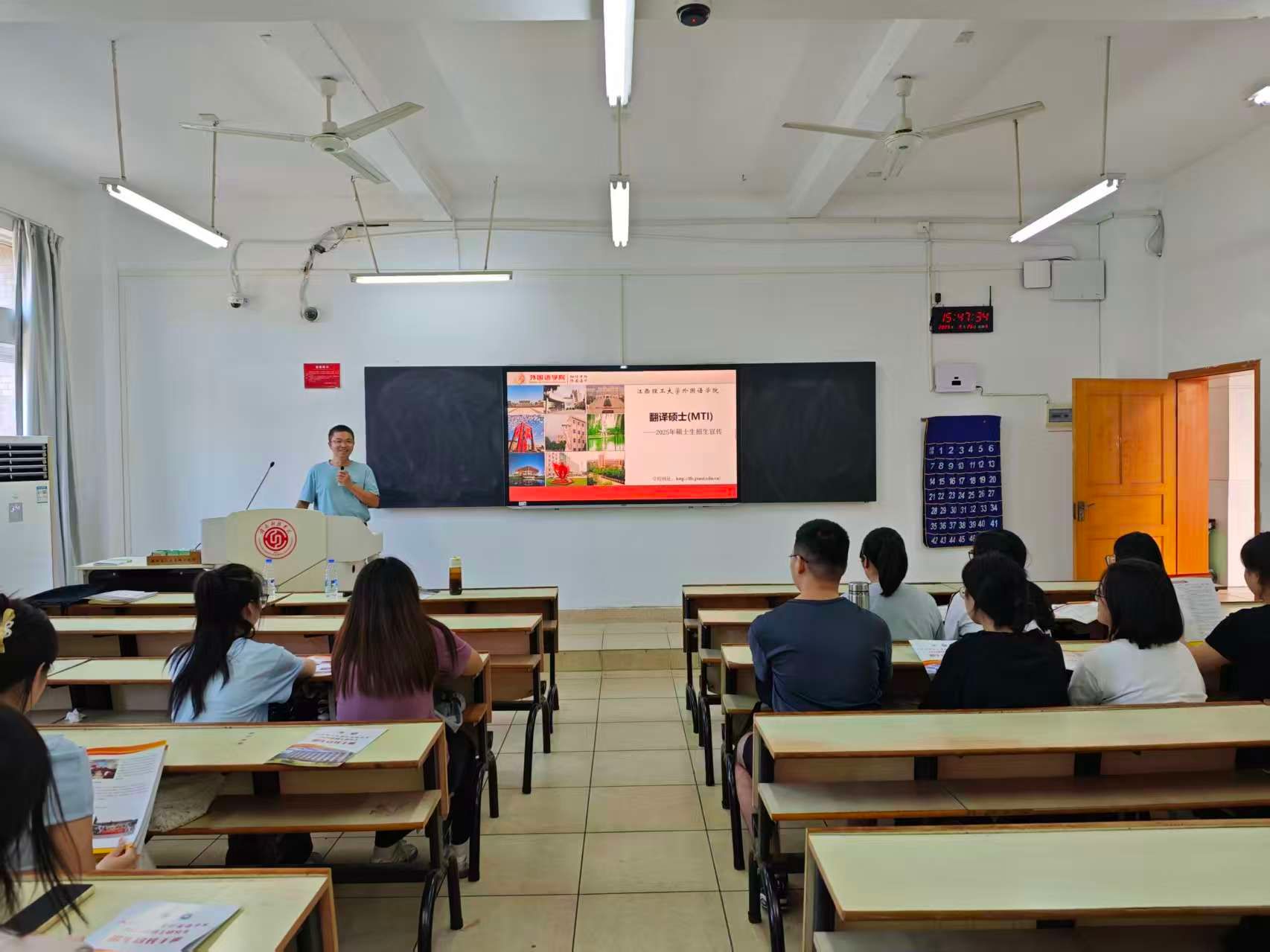 本网讯:2025年全国硕士研究生报名在即,9月26日下午,yl6809永利官网英语教研室邀请江西理工大学外国语学院翻译硕士专业学位(MTI)硕士点负责人张建平教授、汉语国际教育专业硕士点翻译硕士学位点负责人钟舟海副教授、2026级研究生班主任蔡强副教授,给学院英语专业22级和23级员工开展考研指导讲座。