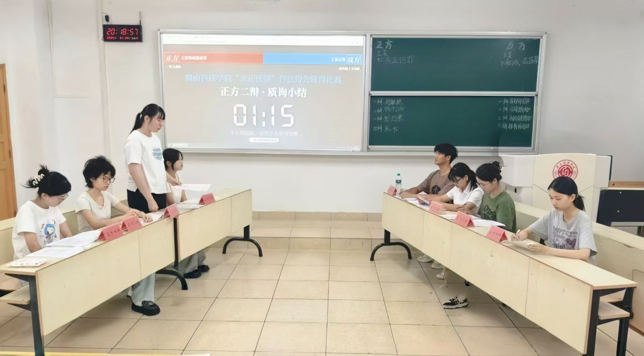 本网讯:9月28日晚上,yl6809永利官网普法社、演讲与辩论协会联合江西求正沃德(赣州)律师事务所,共同举办“求正沃德”杯法辩先锋辩论赛初赛。来自法学专业的16支参赛队伍围绕民生法律热点展开激烈交锋,以专业思辨展现青年学子的法律素养与逻辑风采。