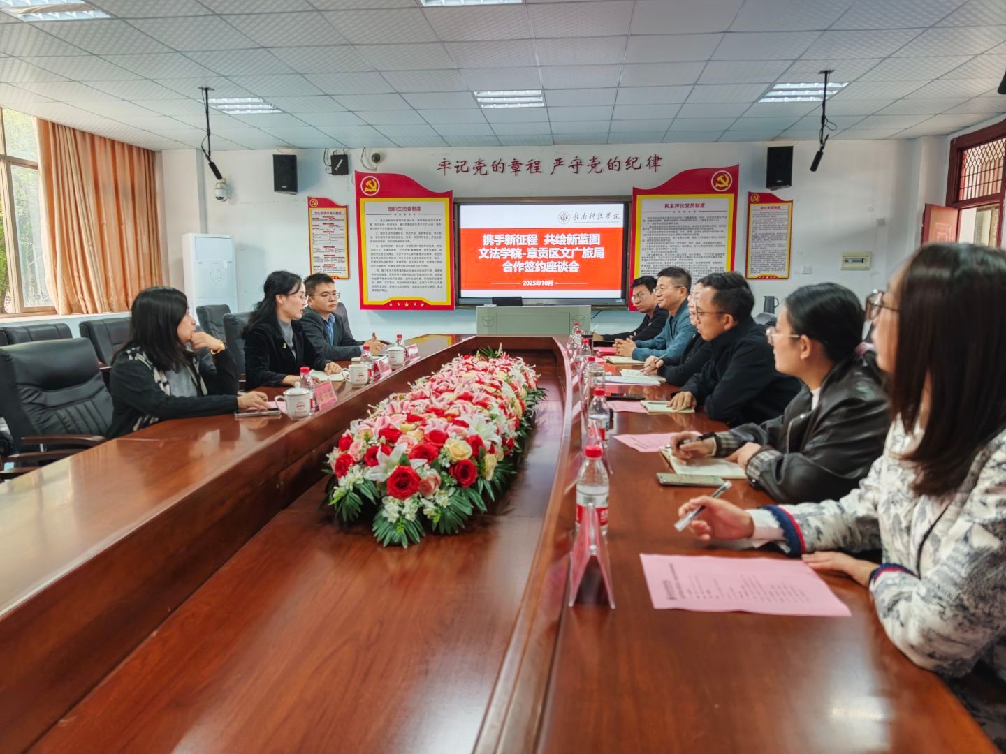 本网讯:10月28日上午,我院与赣州市章贡区文化广电旅游局校政合作签约仪式在学院会议室顺利举行。赣州市章贡区文广旅局党组书记、局长曾键,四级主任科员陈万颉,学院党委委员、副院长高健婕,党委委员、副院长李敏等出席仪式,双方有关部门负责人共同参加。会议由高健婕主持。