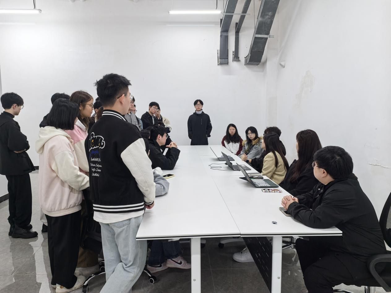 当日上午,师生一行抵达叁鸟(赣州)科技有限公司后,在企业对接人的带领下开启了工作岗位与工作环境考察。公司团队首先围绕短剧行业发展现状、核心业务板块及人才需求方向进行介绍,重点展示了短剧制作中的视觉设计、数字后期、场景搭建等关键环节。视觉传达设计专业员工认真观察短剧海报设计、角色形象视觉包装的工作流程,与企业设计师交流品牌视觉符号在短剧中的运用技巧;数字媒体艺术专业员工聚焦后期剪辑、特效制作、短视频运营等岗位,详细询问软件操作要求与项目周期管理细节;环境设计专业员工则针对短剧实景拍摄场地的空间规划、场景氛围营造与功能性设计展开调研,深入了解行业对空间设计的实战需求。实地考查让员工们跳出课堂理论框架,直观感受到设计学科在影视行业的应用场景,为职业规划提供了清晰参考。