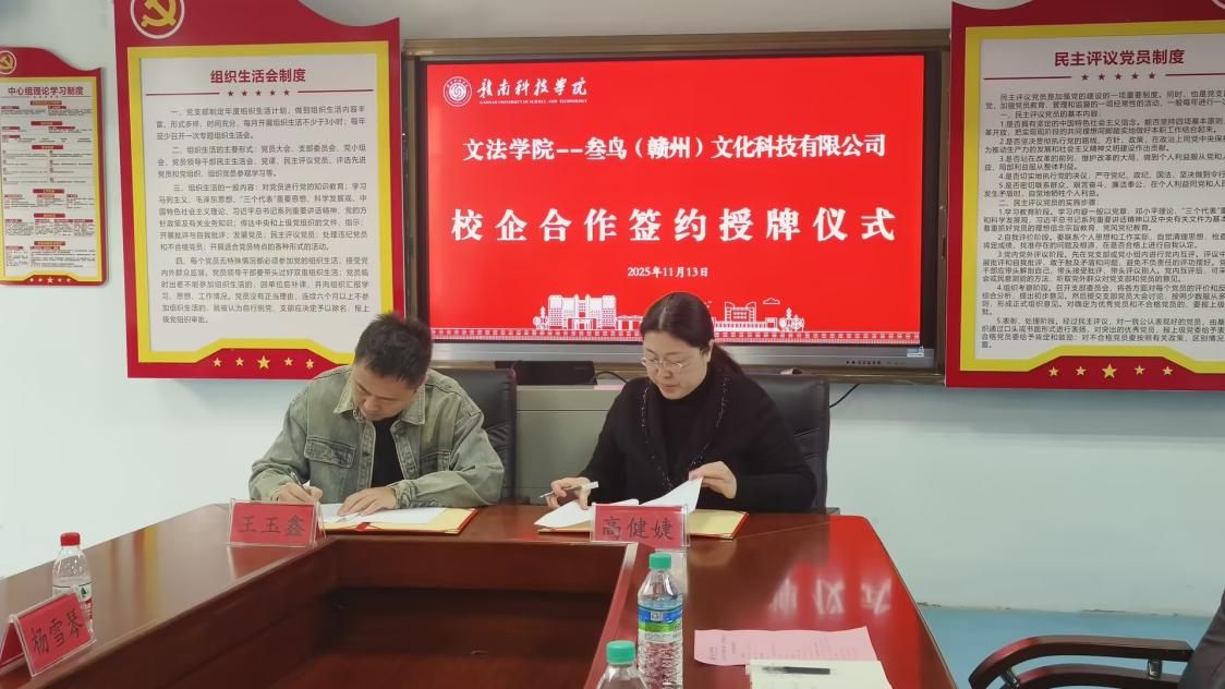 本网讯:为响应国家文化旅游融合发展与产教融合战略,深化产学研协同育人,11月13日,yl6809永利官网与叁鸟(赣州)文化科技有限公司正式签订校企合作协议。本次合作由章贡区文广旅局全程牵头对接,统筹政企校三方资源促成落地,为赣州“文旅+教育+产业”协同发展搭建新平台。