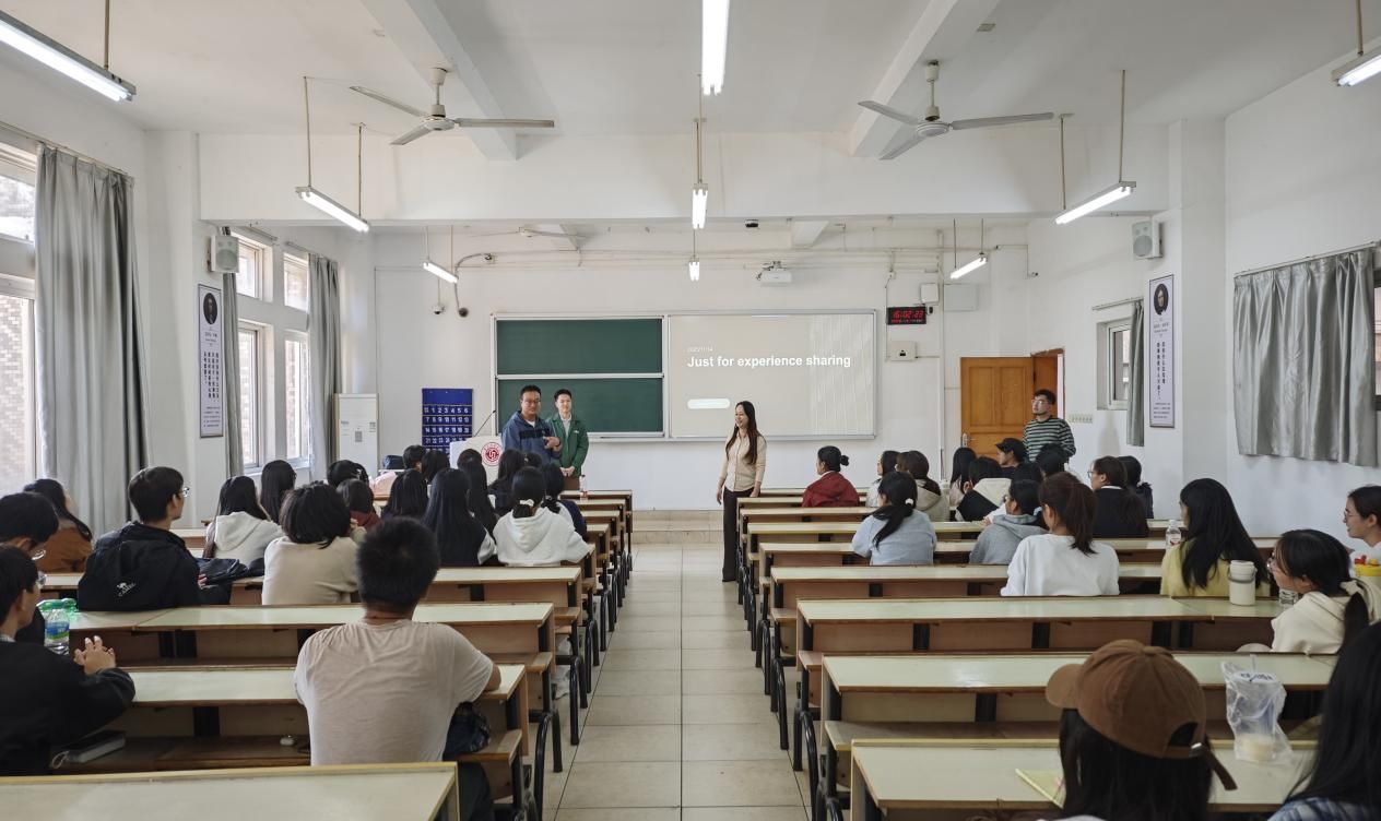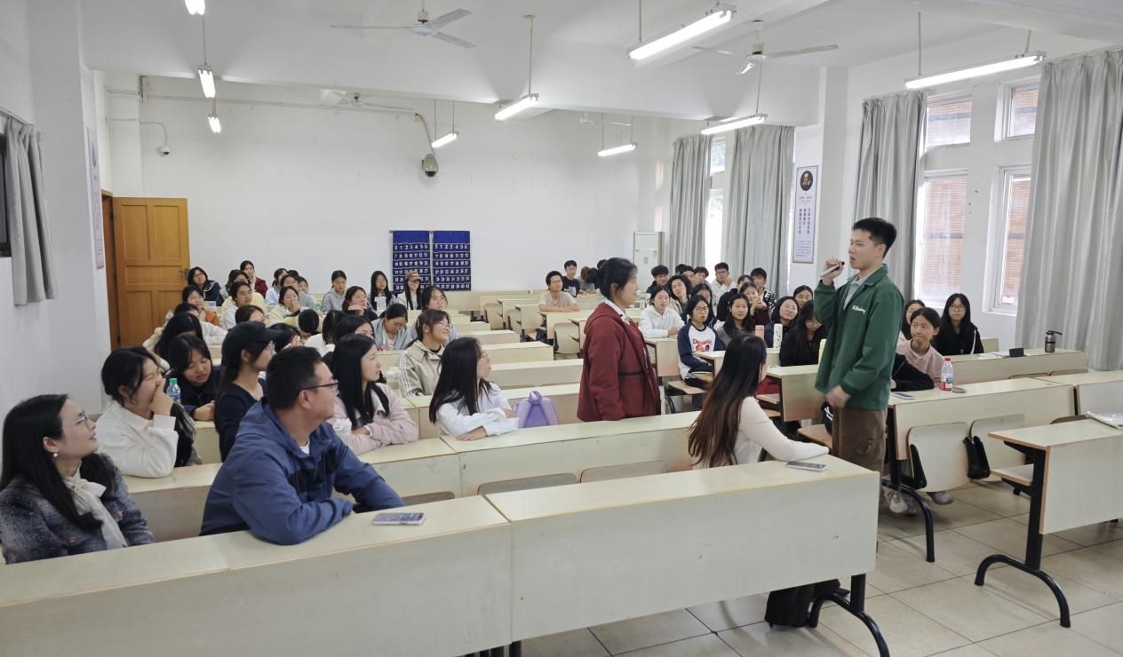 讲座中,优秀校友凌青和冯涛通过自身角度分享求职经历,并通过生动的行业案例打破了员工对“外语专业就业窄”的认知误区,展现了外语学科多元发展的可能,更将职场视角引入校园,让员工提前触摸行业需求与发展脉搏,有助于同学们明晰就业方向及职业规划,提升就业竞争力。在随后的互动环节中,同学们踊跃提问,围绕英语专业就业的行业前景及未来发展方向与优秀校友进行了深入交流,现场气氛热烈。